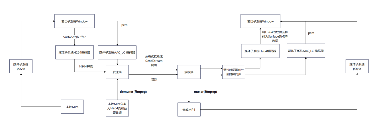 6.从本地读视频文件发送到对端窗口显示,由于OHOS暂时没有单独给出demuxer的接口,原本通过demuxer可以将MP4分理处H264视频流和音频流,该能力在第三方库的开源代码ffmpeg中提供,如需要可自行封装,或先单独处理MP4文件压缩为H264格式 。