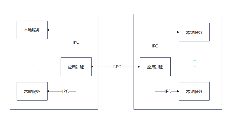 一个前台进程可以通过RPC通信(设备间进程通信)的方式来传输字节数据,流数据和文件数据等数据类型至对端设备的一个前台进程,对端设备的前台进程再调用需要用到的子系统的对应的接口再通过IPC通信的方式与本机运行的服务进程进行通信,获取需要调用到的子系统的能力,实现对应的功能。RPC跨设备通信能力由分布式软总线提供。