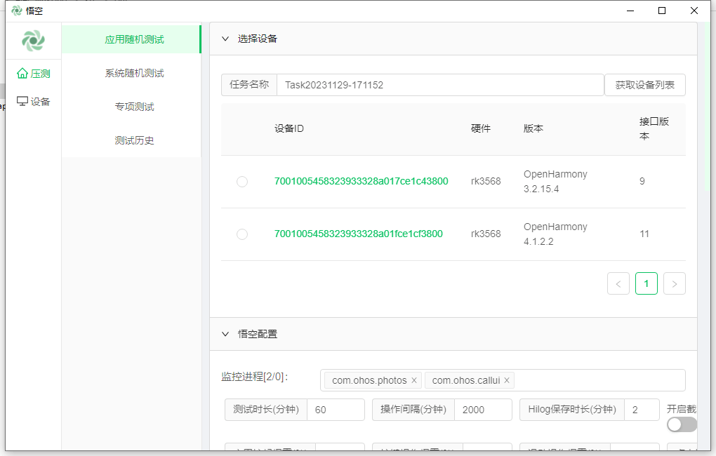 这个是测试界面,可以进行应用随机,系统随机,专项测试和查看测试日志