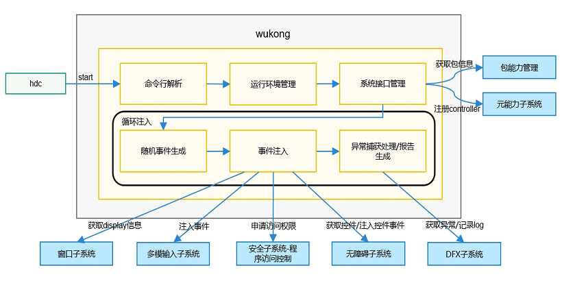 简介 在OpenHarmony仓里有一个稳定性自动化测试工具,叫Wukong。对应的仓位置是https://gitee.com/openharmony/ostest_wukong。这个工具是系统自带的命令行工具,下面先简单介绍下wukong的内容 架构图 Wukong内子模块职责: 命令行解析:支持命令行获取参数并解析命令行参数。 运行环境管