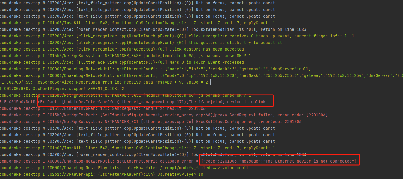 现象:设备接入 无DHCP 能里的网络或两台设备使用网线直连时,无法通过 ethernet API 设置 IP。