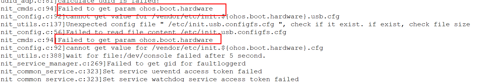 1. 无法获取ohos.boot.hardware ,导致相关配置文件无法读取