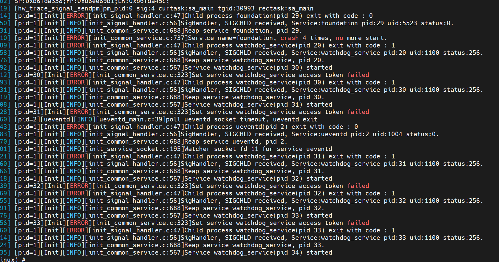 现状:已经拉起部分进程,但是无法登录鸿蒙终端