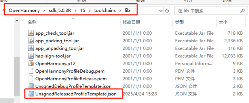 并建议将sdk的toolchains\lib目录UnsgnedReleasedProfileTemplate.json或UnsgnedDebugProfileTemplate.json也放到sign目录中,目的是为了后续新增其他应用权限时,可以快速的添加权限和修改签名。