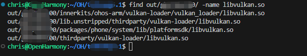 在out/产品名/目录下搜索libvulkan.so,发现并没有编译中间产物和生成的so。