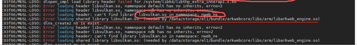 通过添加错误信息,我们可发现libarkweb_engine.so依赖的libvulkan.so没有找到: