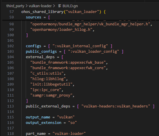 可以看到vulkan_loader动态库组件output_name即为vulkan,后缀output_extension为so,还有一个vulkan_headers的依赖项。