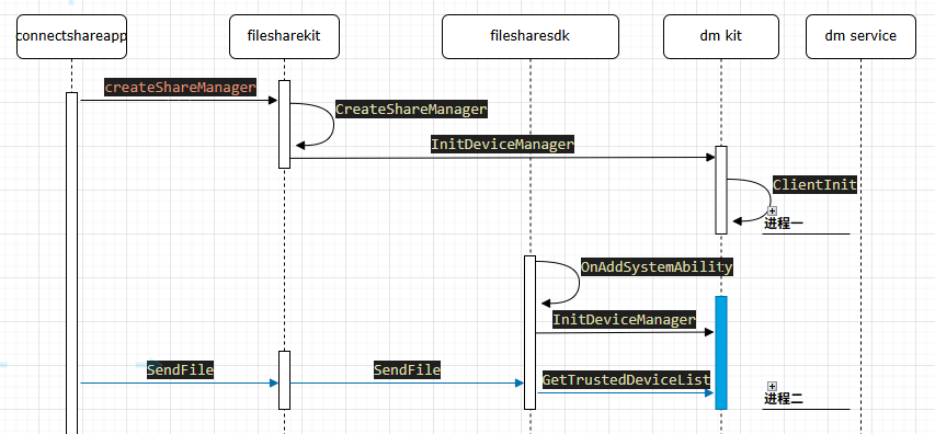 fileshare服务中,会先创建软总线sessionserver后,再初始化dm client。