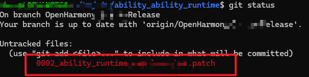 git status 查看本仓有哪些修改(可以看到当前只有一个新增的.patch文件):