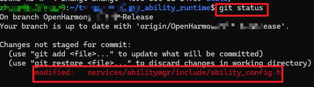 2. 修改 ability_config.h文件后,回到此仓的源码根目录下(一般是有.git或者有.gitee 的目录下),查看此仓修改信息