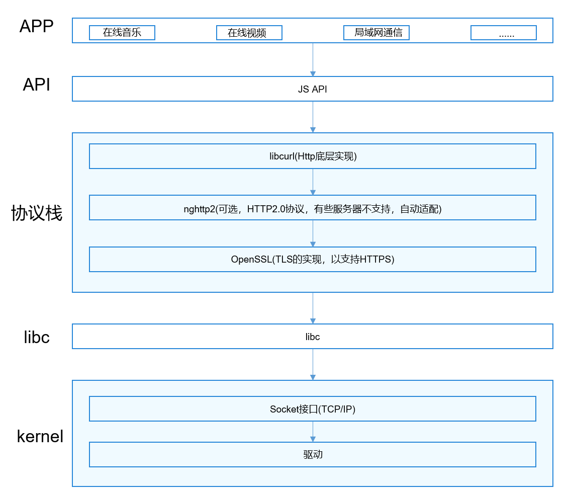 网络协议栈模块作为电话子系统可裁剪部件,主要分为HTTP和socket模块;