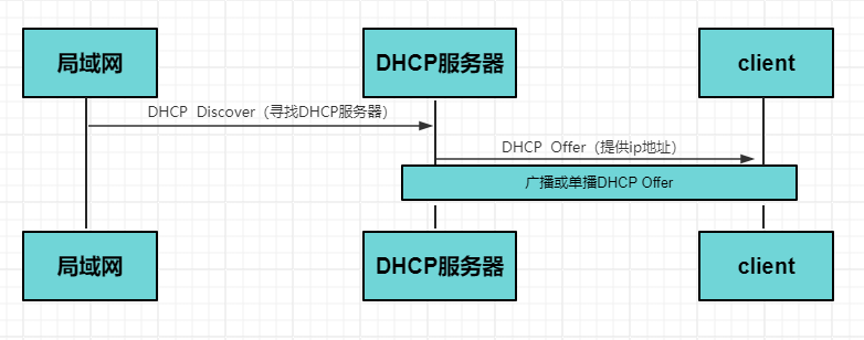 DHCP 服务器发送 DHCP Offer 包,提供可用的 IP 地址和其他配置信息。