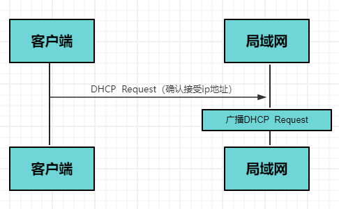客户端广播 DHCP Request 包,确认接受提供的 IP 地址。