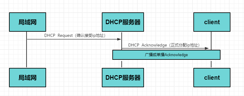 DHCP 服务器收到 DHCP Request 包后,会发送一个 DHCP 确认包,正式分配 IP 地址和其他配置信息。