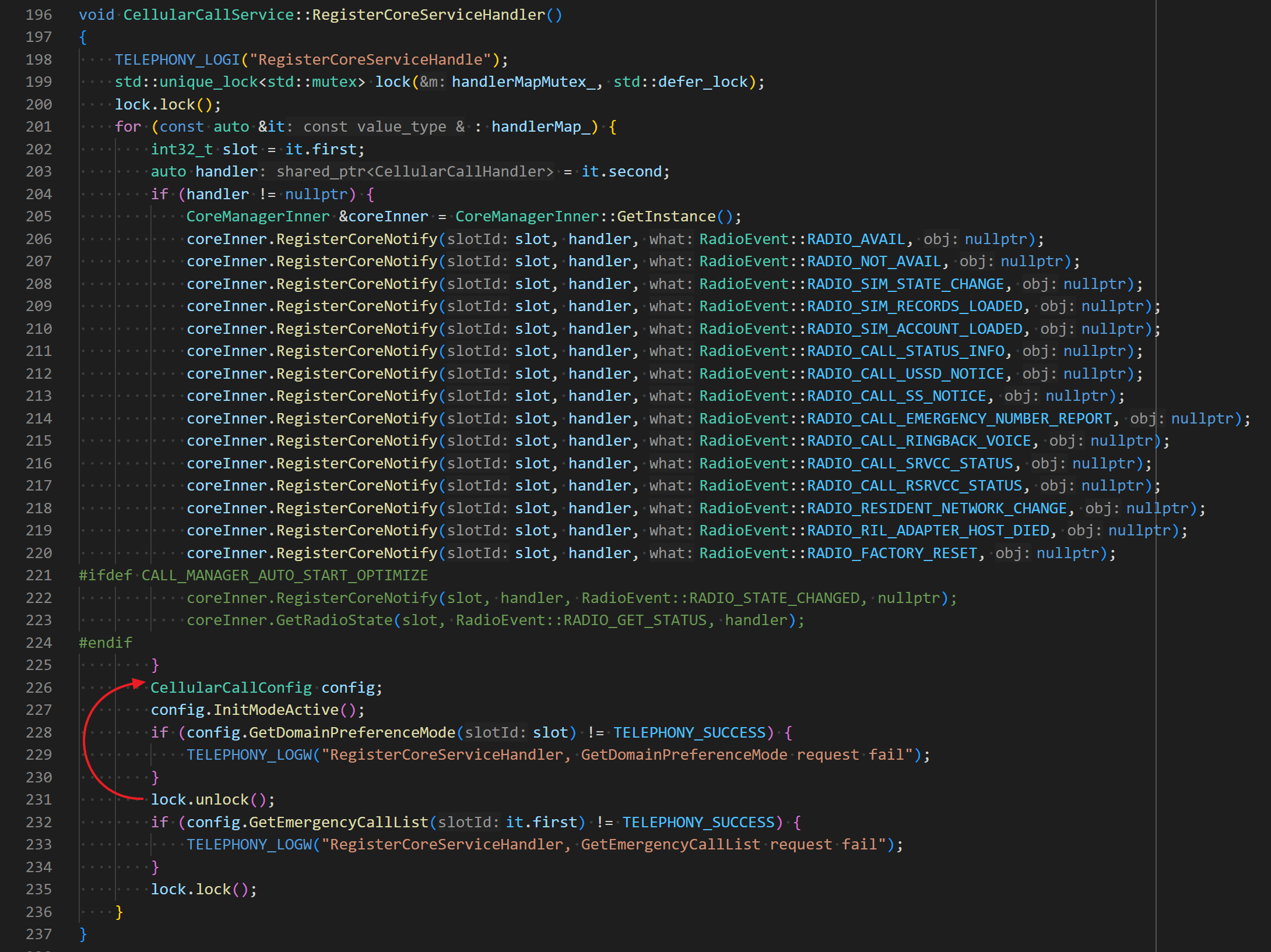 发现在RegisterCoreServiceHandler()函数中持有锁,没有释放。