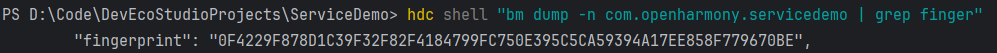 hdc shell "bm dump -n com.openharmony.servicedemo | grep finger"