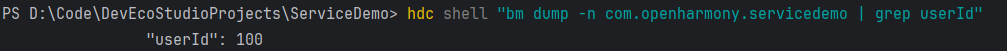 hdc shell "bm dump -n com.openharmony.servicedemo | grep userId"