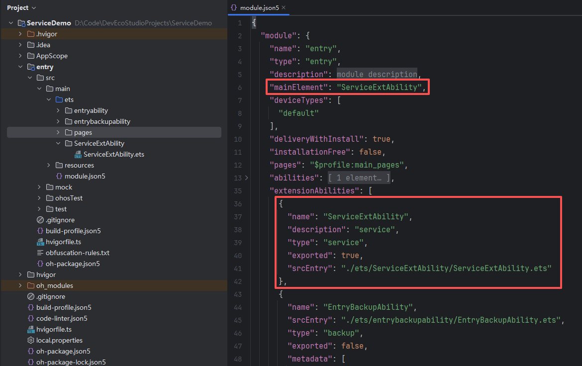 "srcEntry": "./ets/ServiceExtAbility/ServiceExtAbility.ets"