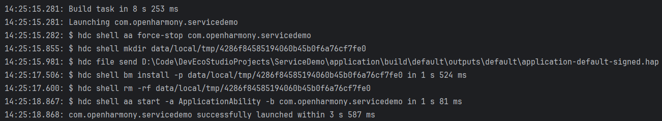 hdc file send D:\Code\DevEcoStudioProjects\ServiceDemo\entry\build\default\outputs\default\entry-default-signed.hap /data/ServiceDemo.hap