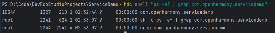 hdc shell "ps -ef | grep com.openharmony.servicedemo"