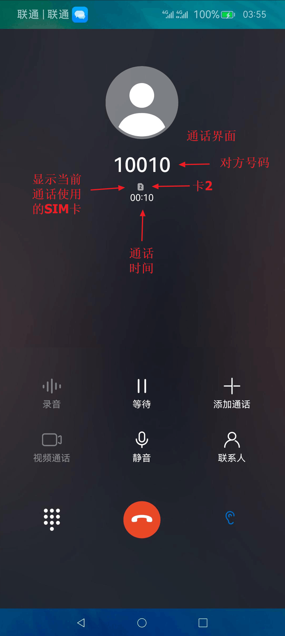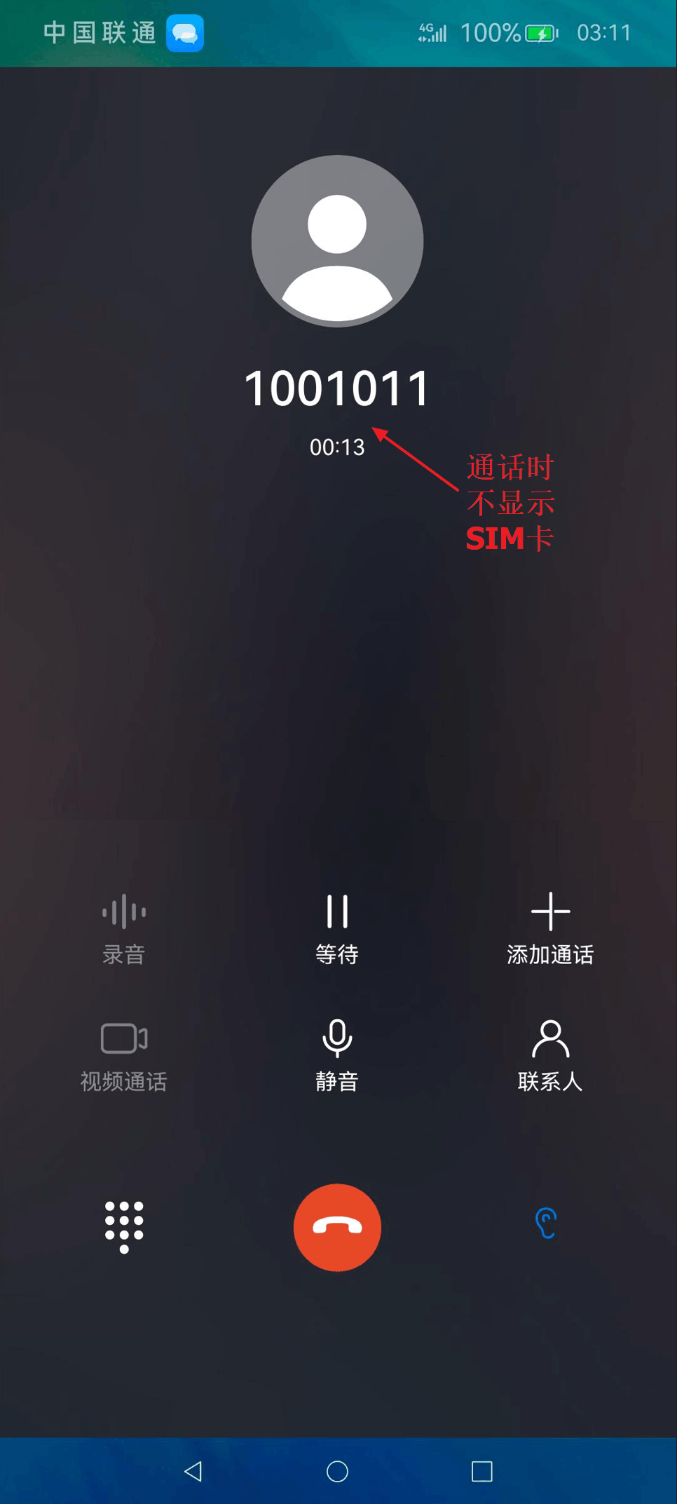通话过程中,通话界面也不显示SIM卡标识