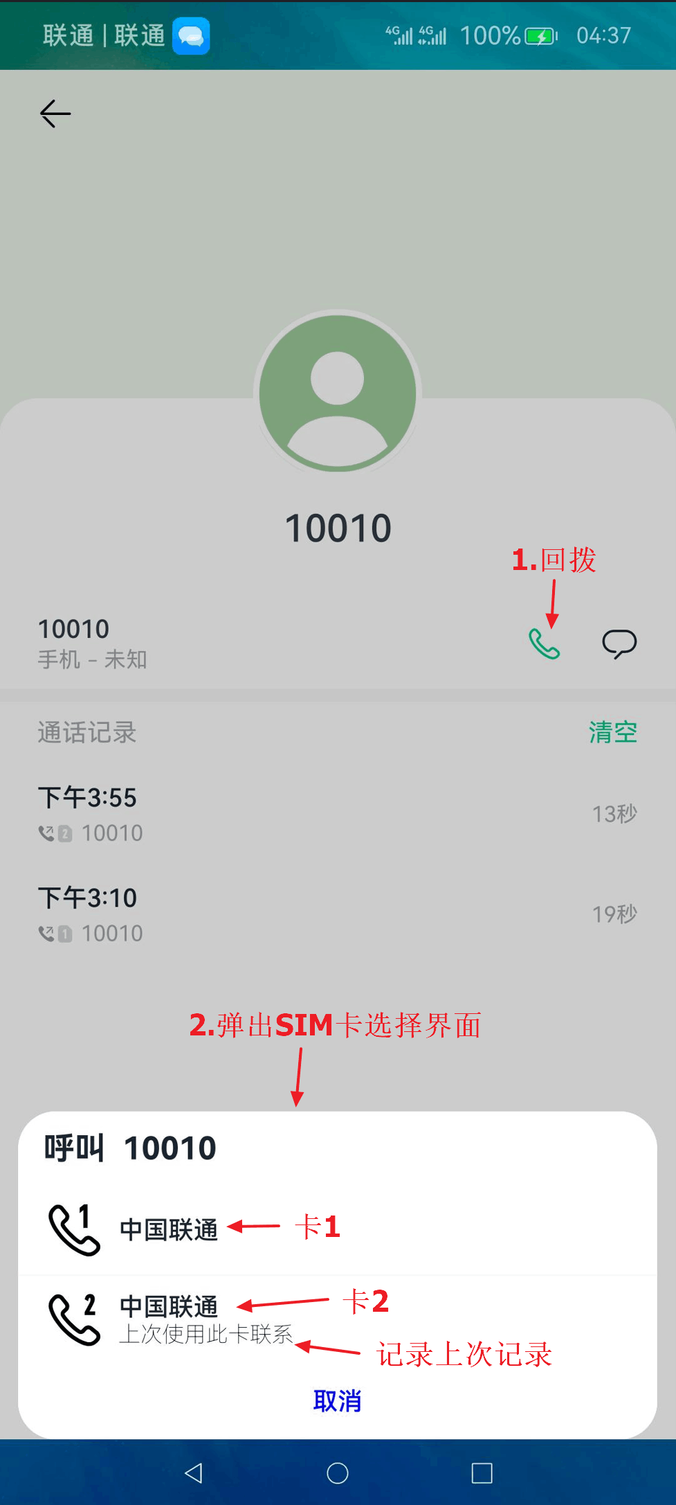 明确显示本次通话使用的SIM卡(卡1/卡2)