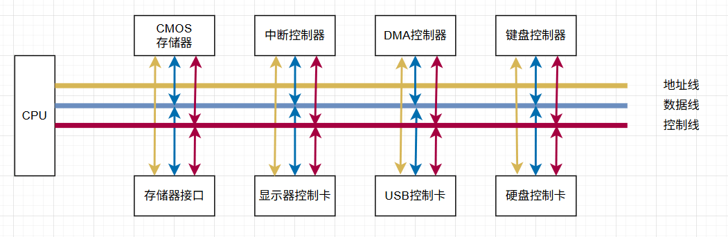 计算机中有很多的设备,需要进行数据通信和任务通信,为了解决这个问题,于是就出现了总线技术。总线就像计算机内部的 “超级高速公路”,专门负责让 CPU、存储器、各种控制器(如键盘控制器、硬盘控制卡等)之间顺畅沟通。总线为信息在各个部分之间流转提供了一个传输通道,传统的硬件总线可以划分为数据总线、控制总线以及地址总线,分别传输数据、地址数据、控制数据。