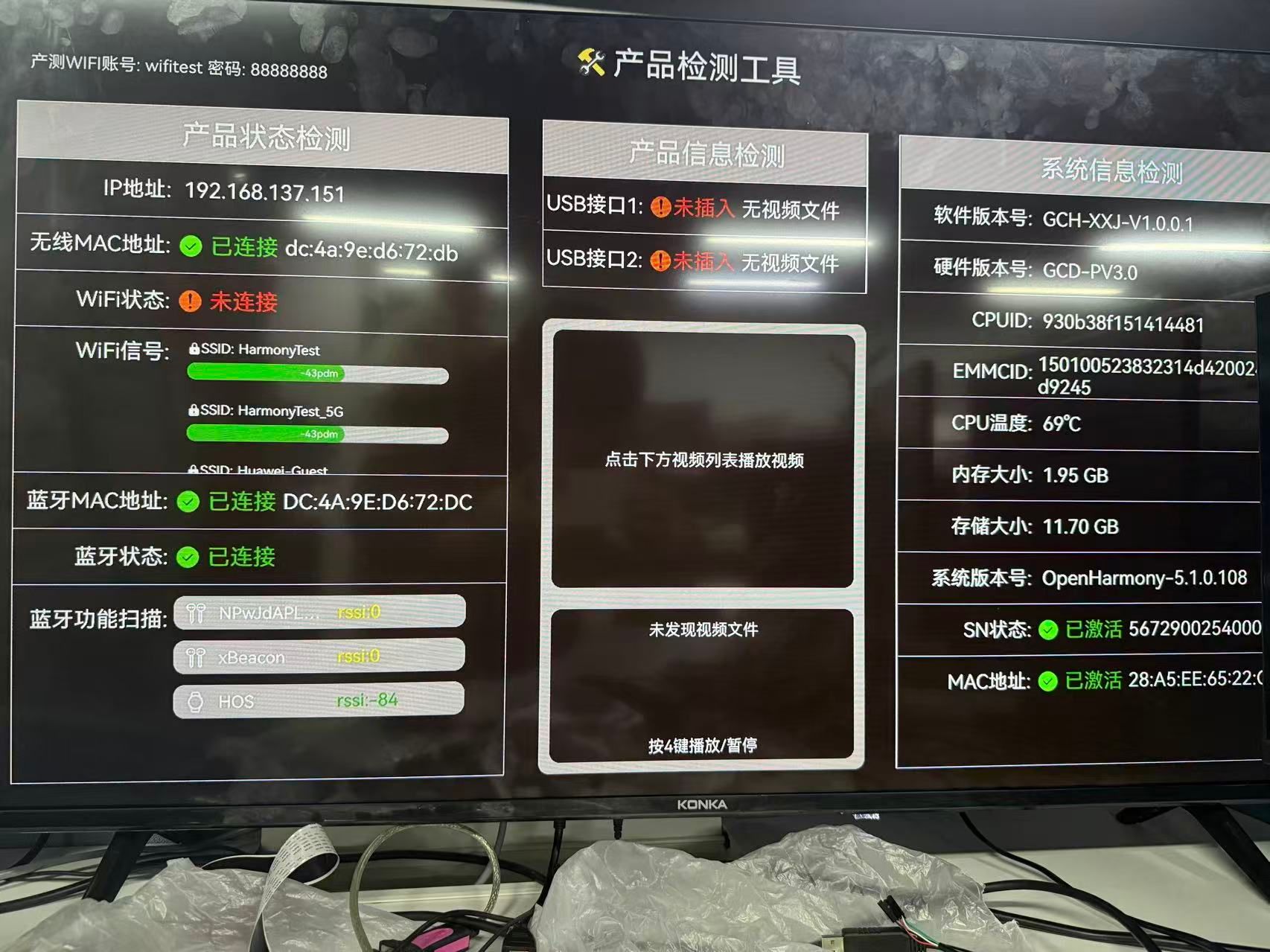 设备能顺利抵达用户家,离不开生产环节的 “精准落地能力”。工厂菜单(生态伙伴联合贡献)作为产线的 “一站式操作台”,支持 “单板生产、整机生产、老化测试” 全流程操作:无需额外开发适配工具,产线人员即可通过统一菜单完成硬件调试、系统检测,既大幅缩短了生产周期,又能从源头保障每台大屏的硬件兼容性 —— 比如提前测试投屏功能的设备适配性,避免用户端出现连接故障,为后续用户体验筑牢基础。