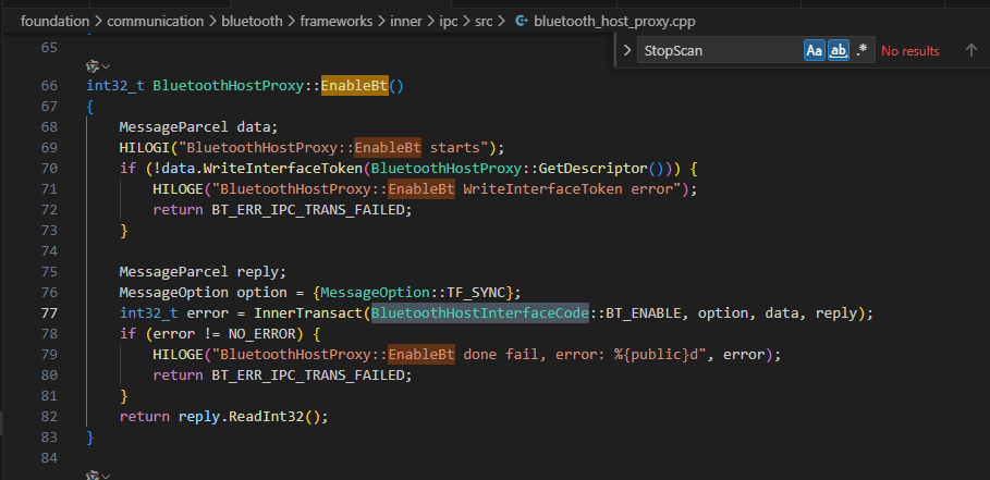 proxy中的EnableBt()通过ipc通讯,发送BT_ENABLE消息