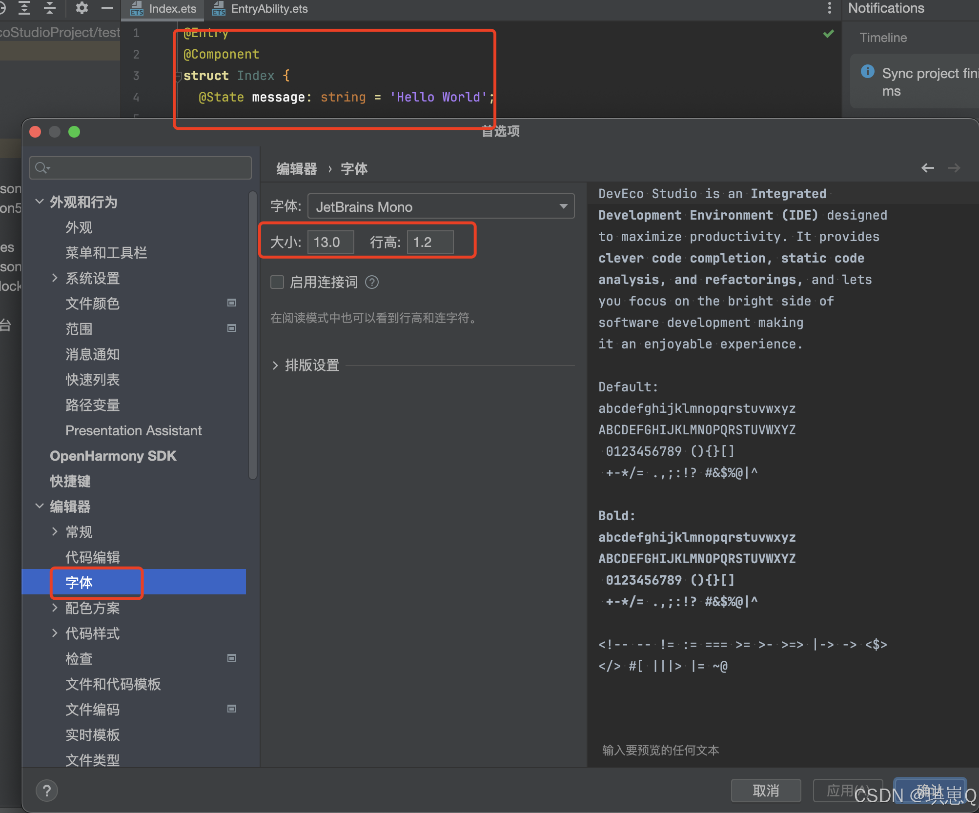 2. 代码大小:我一般大小17.0 行高1.2 岁数大了眼神不好 写UI的时候会改小一点 左边要分屏放设计稿