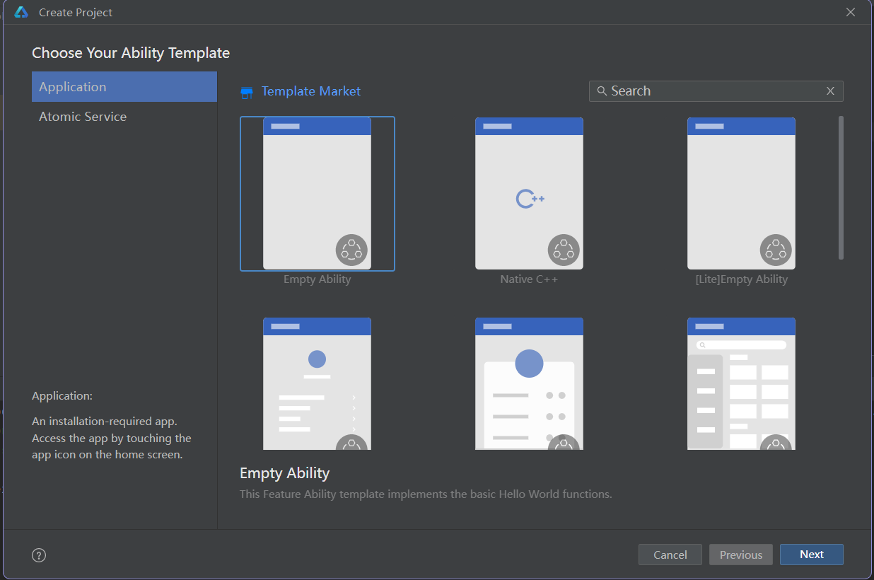 1.打开DevEco Studio,然后选择File->New->Create Project来创建新的项目文件。