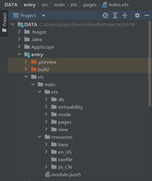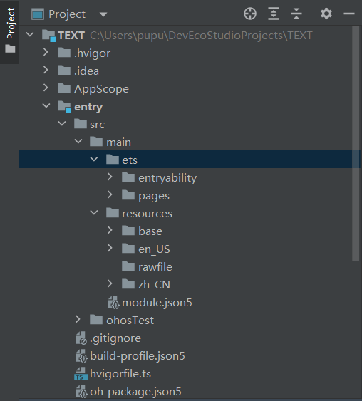 (1)找到你所保存的解压文件的位置,找(C:\Users\pupu\DevEcoStudioProjects—原路径)你的路径(就是你把下载的位置)\DATA\entry\src\main\ets 。