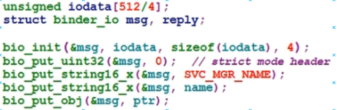 参考代码:bctest.c - OpenGrok cross reference for /frameworks/native/cmds/servicemanager/bctest.c