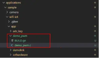 我们在app中新建文件夹 demo_pwm,里面存放代码 demo_pwm.c,然后app_demo_pwm.c所有的代码都复制到demo_pwm.c中,整个文件夹如下:
