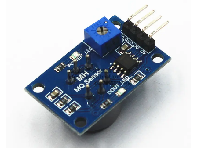 MQ-7 CO气体传感器使用的敏感元件为气敏材料(SnO2),该传感器对一氧化碳的灵敏度高。SnO2在洁净空气中电导率低,传感器的电导率随着空气中CO气体浓度增加而增大。最后使用简单的电路将电导率的变化转换为跟气体浓度相关的输出信号。