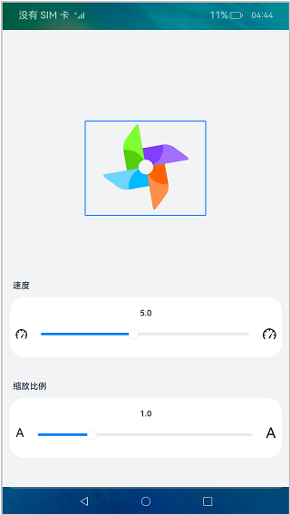 在speedChange()函数中,以固定的时间间隔调整rotate的角度,也就是参数angle。onPageShow是SliderPage页面的生命周期方法,在其中调用speedChange()函数,表示从程序启动时,便开始执行。自此我们已经实现了风车的旋转效果。代码如下: