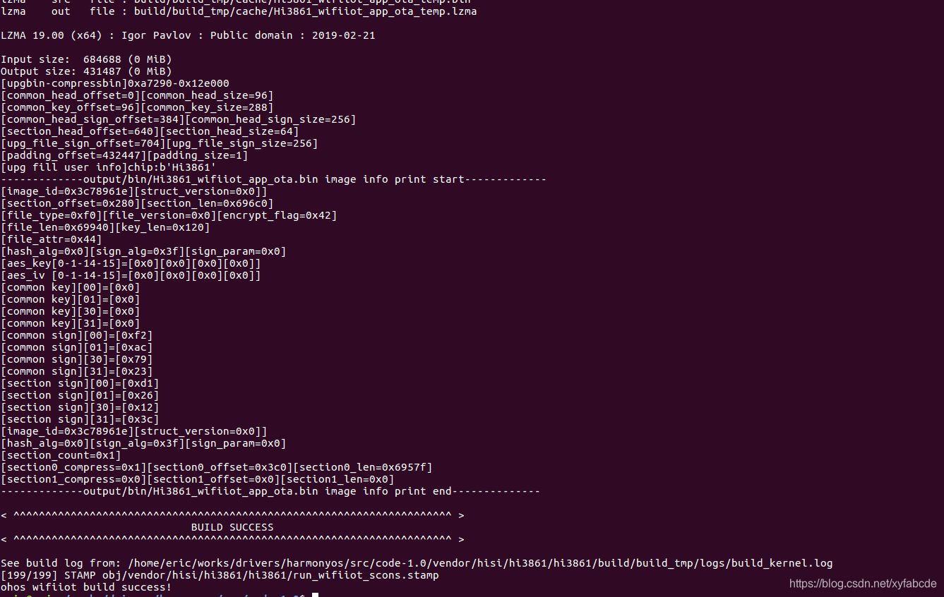 不知道为啥鸿蒙推荐使用VS code 中打开终端运行编译工程,直接在terminal 打开运行python build.py wifiiot 不就行了。这一步骤感觉会出现问题,很幸运直接编译过了。在output文件夹找到了Hi3861_wifiiot_app_allinone.bin 就是我们要烧写的文件