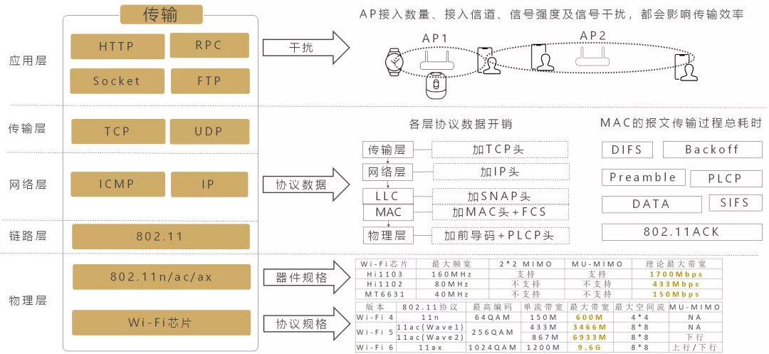 比如生活中,我们经常看到Wi-Fi版本标称最大可达几百至上千兆带宽,这么高的带宽真的是用户实际使用带宽吗?事实上,Wi-Fi的最大带宽和用户使用带宽是两回事,这其中也隐含着以OSI为原型的网络模型的些许不足之处。