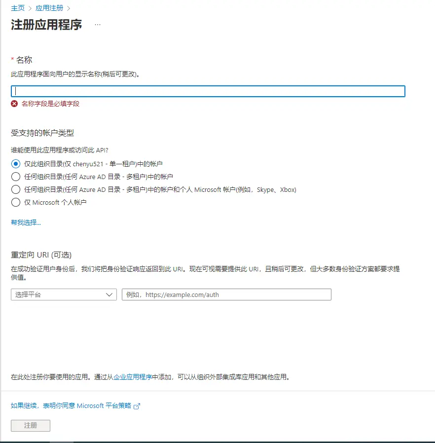 2.1 在Azure平台完成应用注册