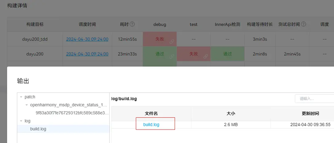 问题定位思路:一般情况而言,本地是好的,我们怀疑门禁有问题,不假思索地多次执行 start build。如果问题依旧,我们就要思考是否因为本次修改代码引入了问题,于是点击失败,选择日志,并查看