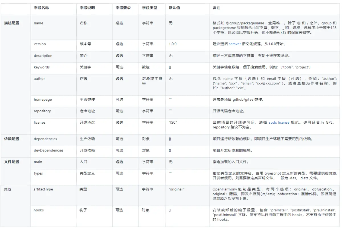 oh-package.json5 字段说明: