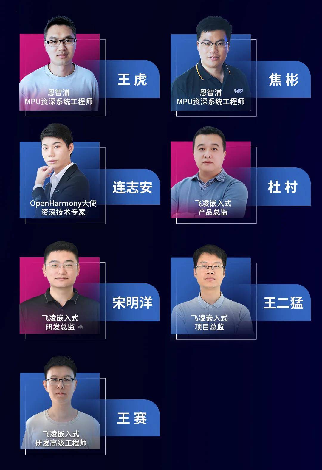 本次飞凌嵌入式技术创新日(北京站),邀请到了多位重量级技术大咖出席,不仅有恩智浦MPU资深系统工程师和OpenHarmony资深技术专家,飞凌嵌入式的产品总监、研发总监、项目总监和资深研发工程也会悉数亮相,分享最新的研究成果、行业见解和应用案例。