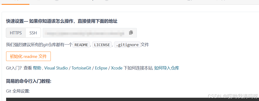 这是我提前在Gitee中新建的一个私有仓库(如果不知道怎么新建仓库,建议先补补课吧哈哈哈),SSH的url复制一下,粘贴到上图即可(这里的URL我设置马赛克了)