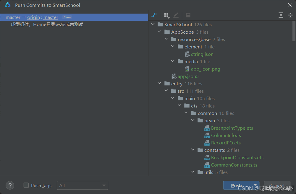 然后就可以提交代码了,点击Push就ok啦