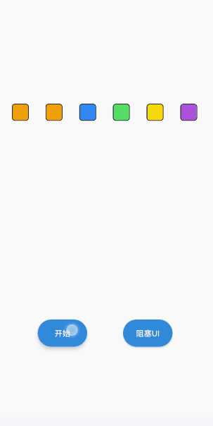 下面我们再次通过上面的 Demo 来模拟 UI 主线程业务阻塞。这次我们看到动画非常流畅,丝毫没有受到 UI 主线程业务阻塞的影响。
