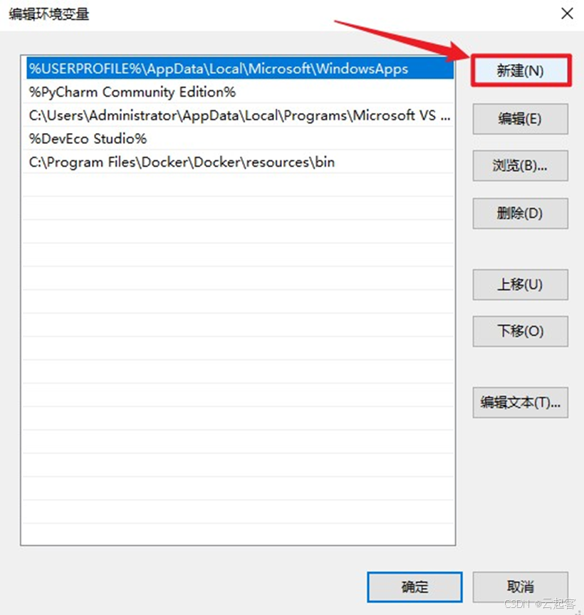 点击“新建”按钮,将docker可执行程序目录放入,具体如下所示: