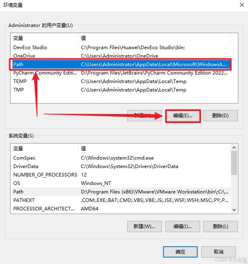 选中“Path”,点击“编辑”按钮,具体如下所示: