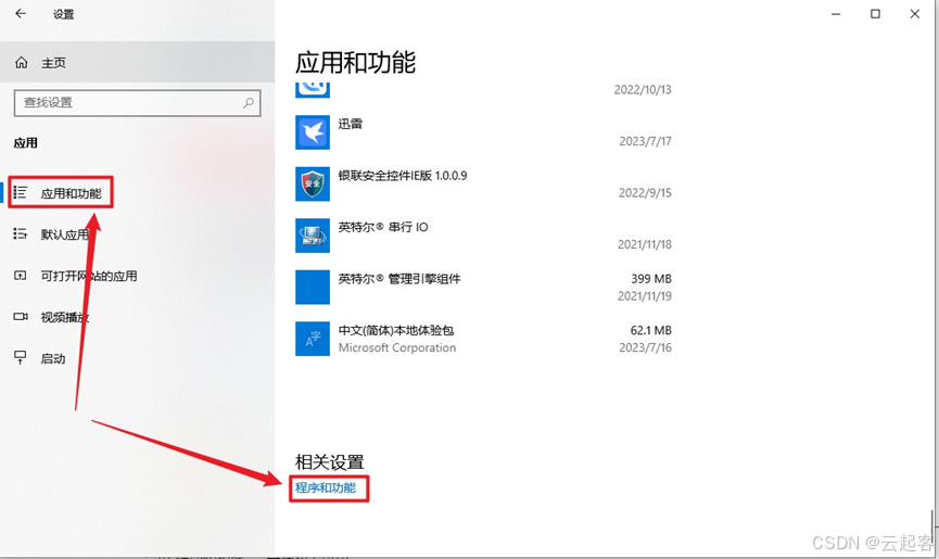 选择"应用和功能" => "程序和功能" ,具体如下所示: