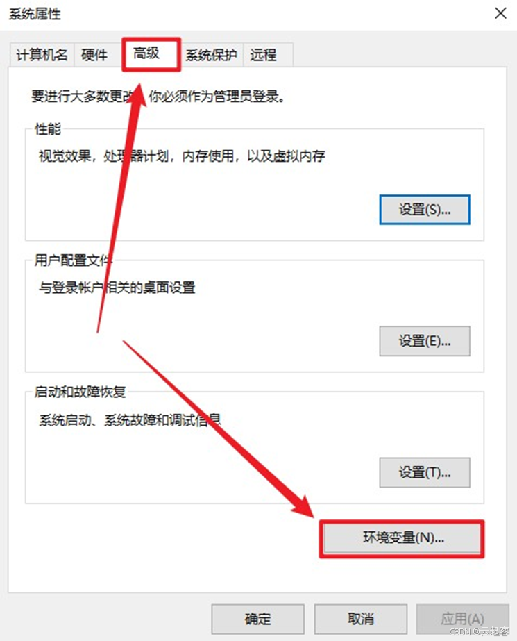 点击“高级” => "环境变量",具体如下所示:
