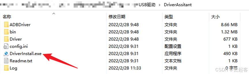 打开USB驱动目录,点击DriverInstall.exe,如下图所示:
